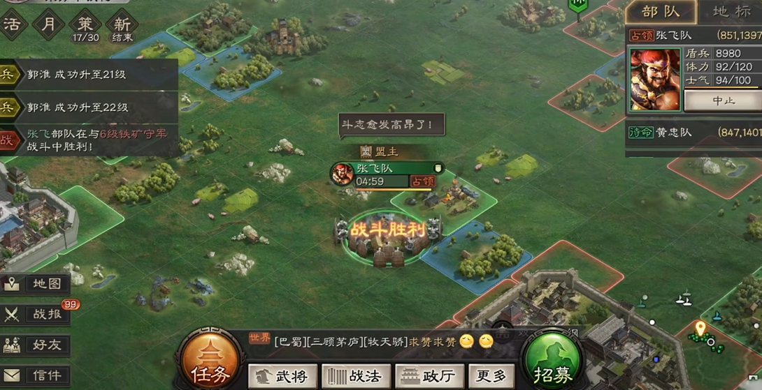 未探索区域需先派遣部队侦查,3分钟后获得完整情报(包括守军配置和精确坐标)方可分享。这意味着新占领的资源点或敌方要塞无法即时同步,必须等待侦查完成。此设定增加了战略部署的延迟性,但符合游戏对战争迷雾的设计逻辑。